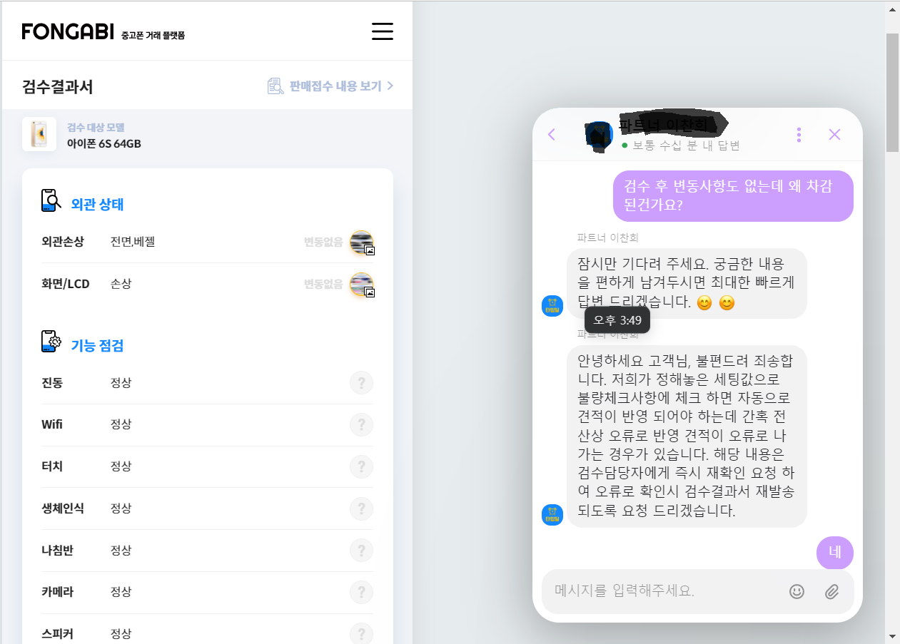 핸드폰을 수거해간 후, 업체에서 핸드폰 검수를 하게되는데