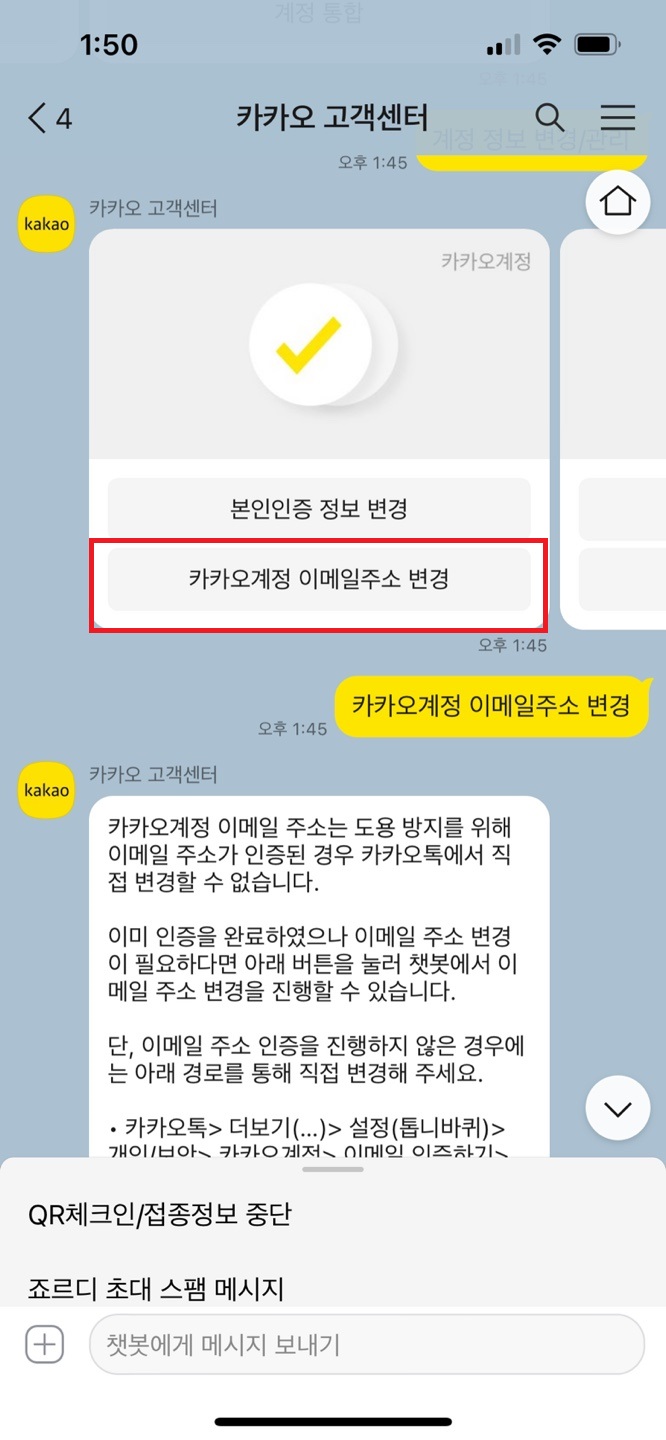 4. 카카오계정 이메일주소 변경 선택한다.