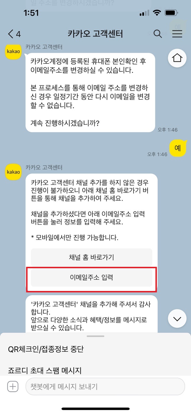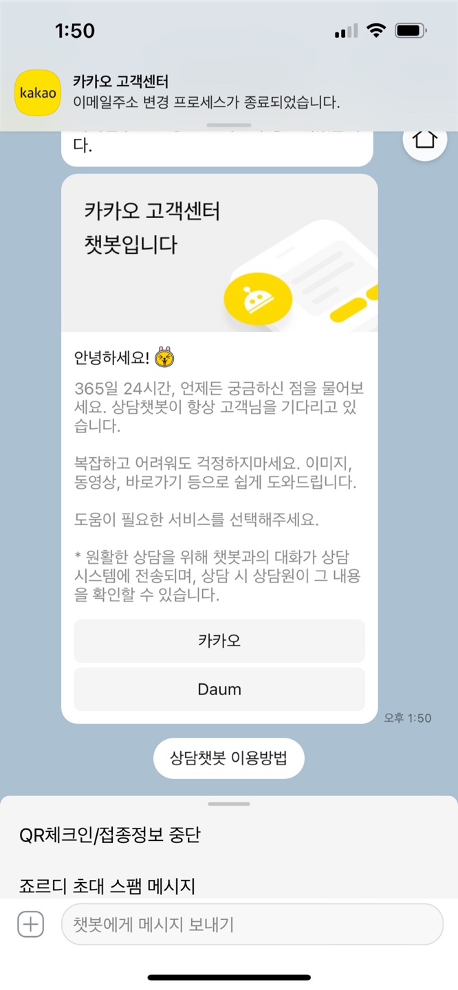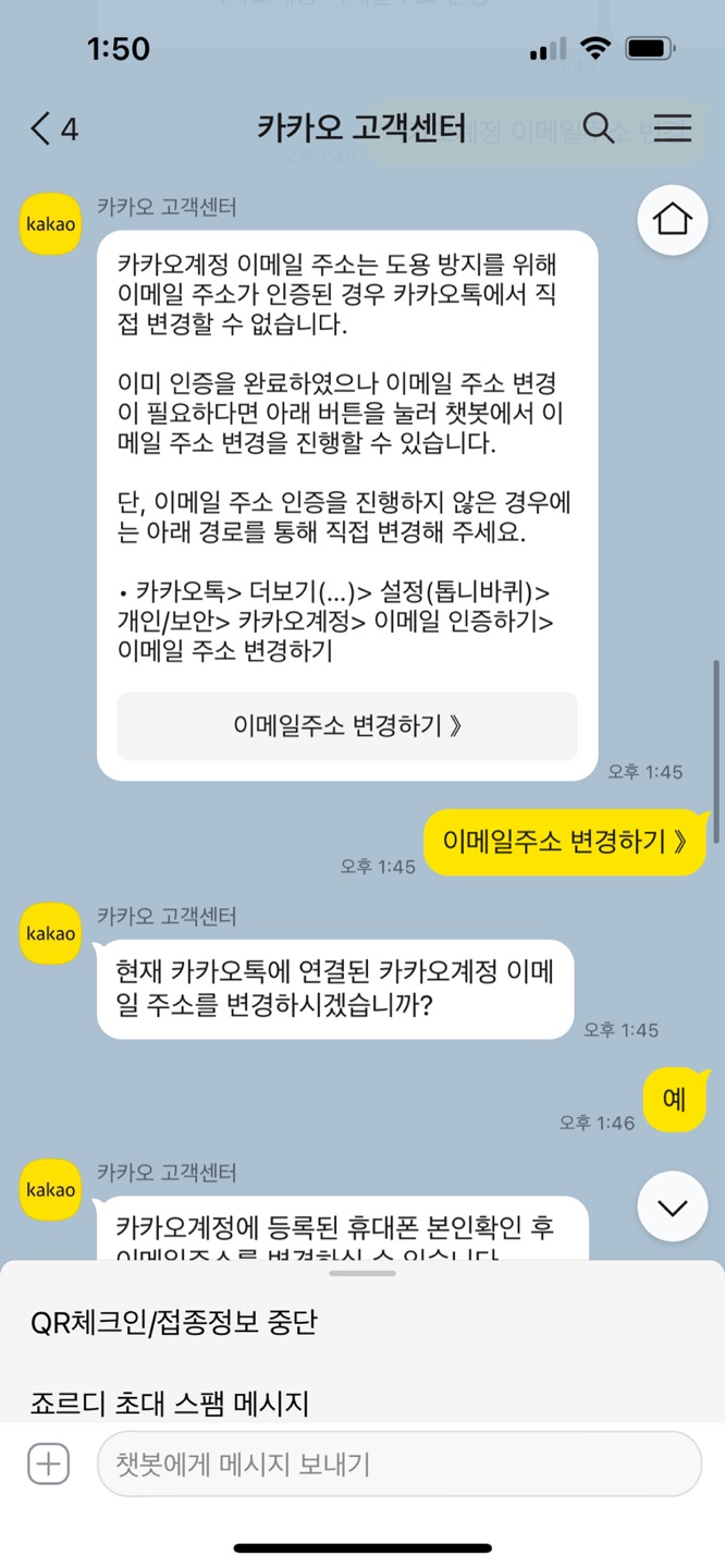 카카오계정 이메일 주소를 변경하려고 알아보았다.
