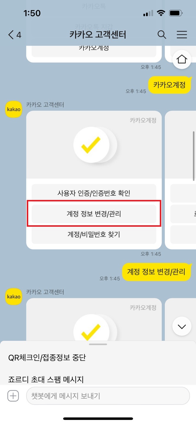 3. 계정 정보 변경/관리 선택한다.