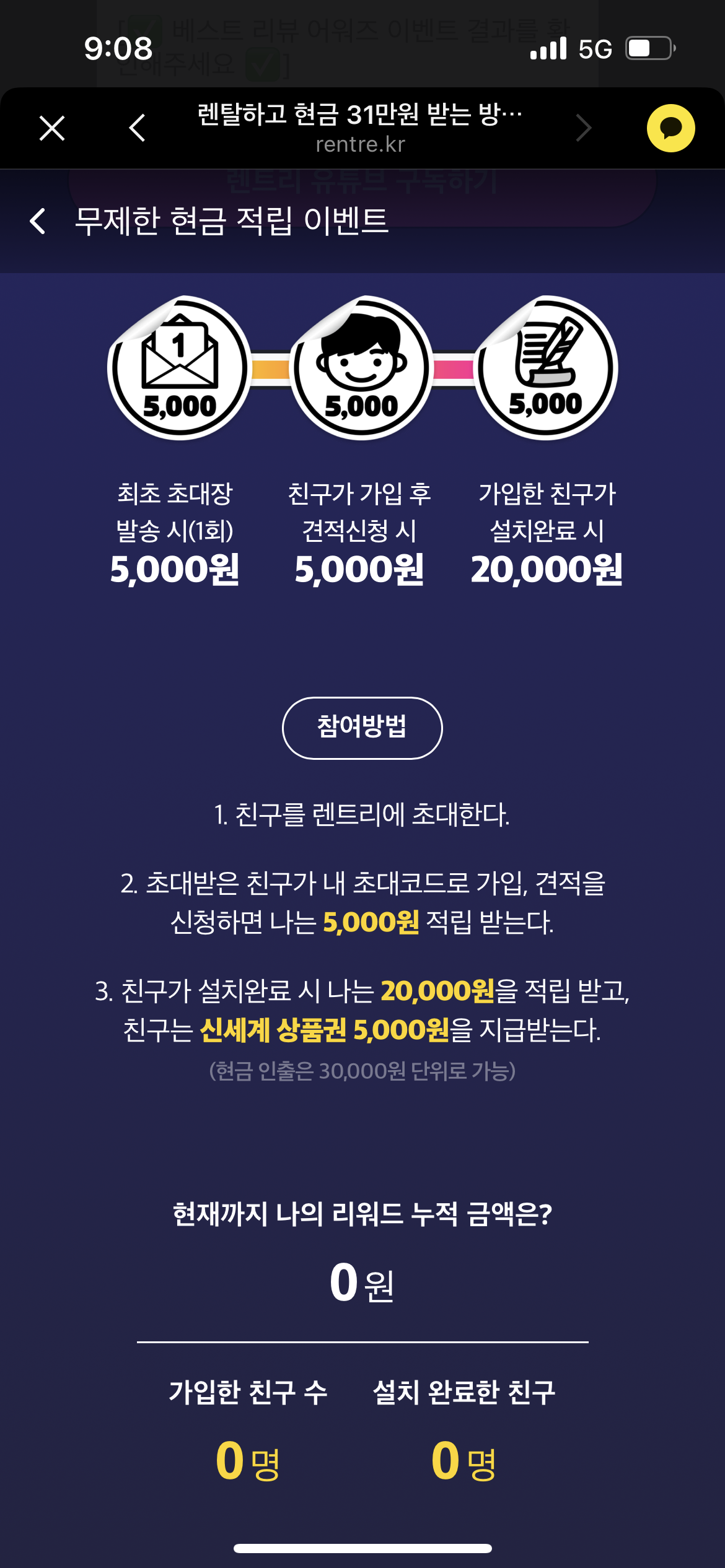 렌트리 사이트 가입시 초대코드 입력하면된다.