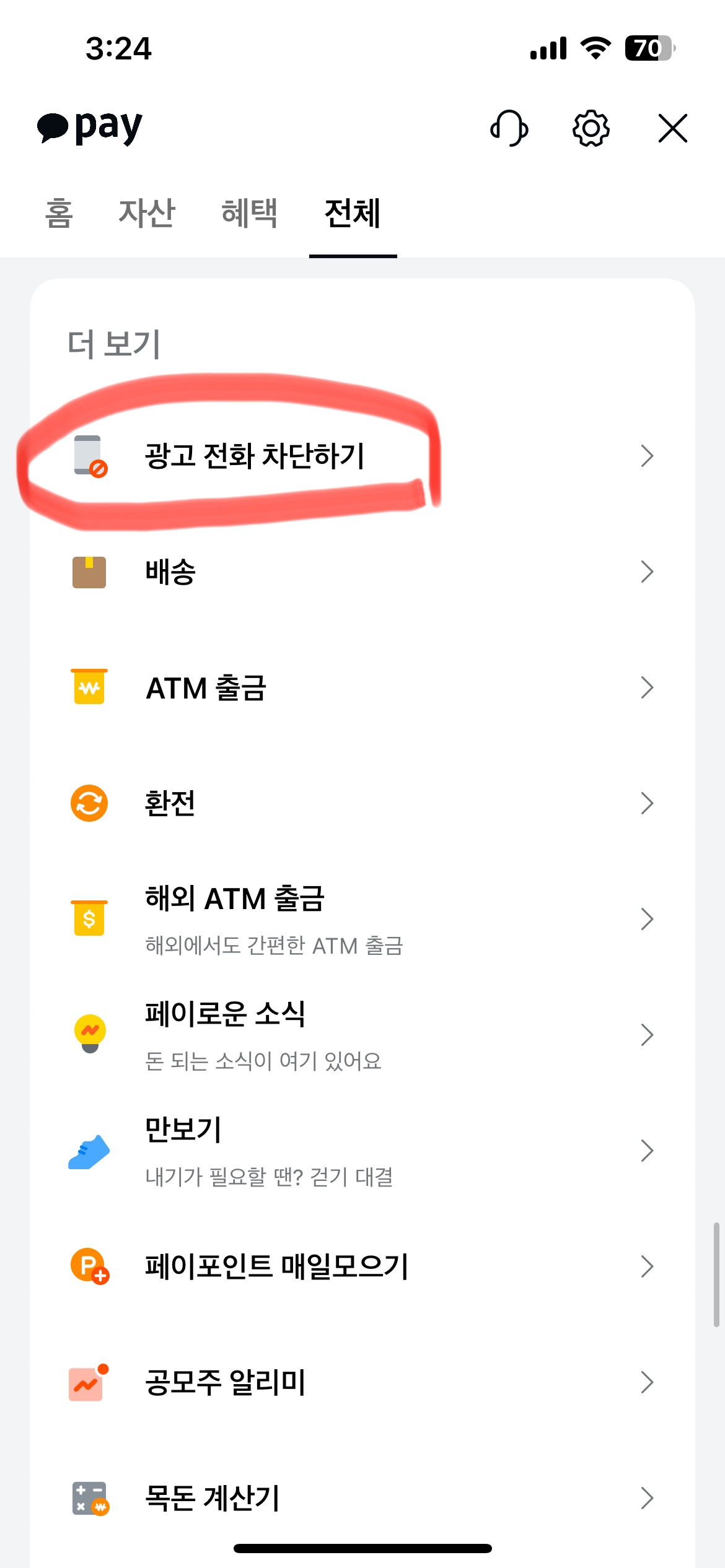 3. 전체 - 맨밑으로 쭉 내려서 ‘광고 전화차단하기’