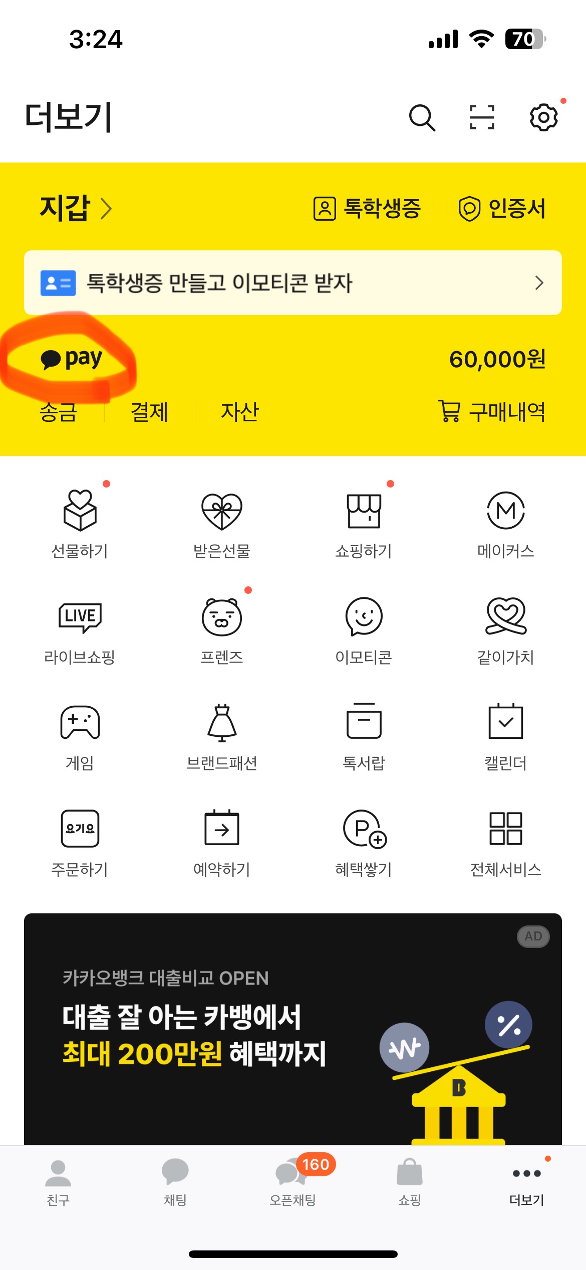 2. 더보기 - 카카오페이 탭