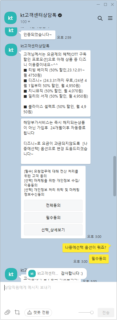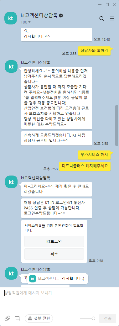 결과적으로 KT고객센터상담톡으로 해지함.