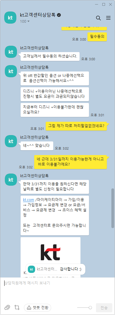 3. KT상담전화상담톡 으로 해지하기 - 성공