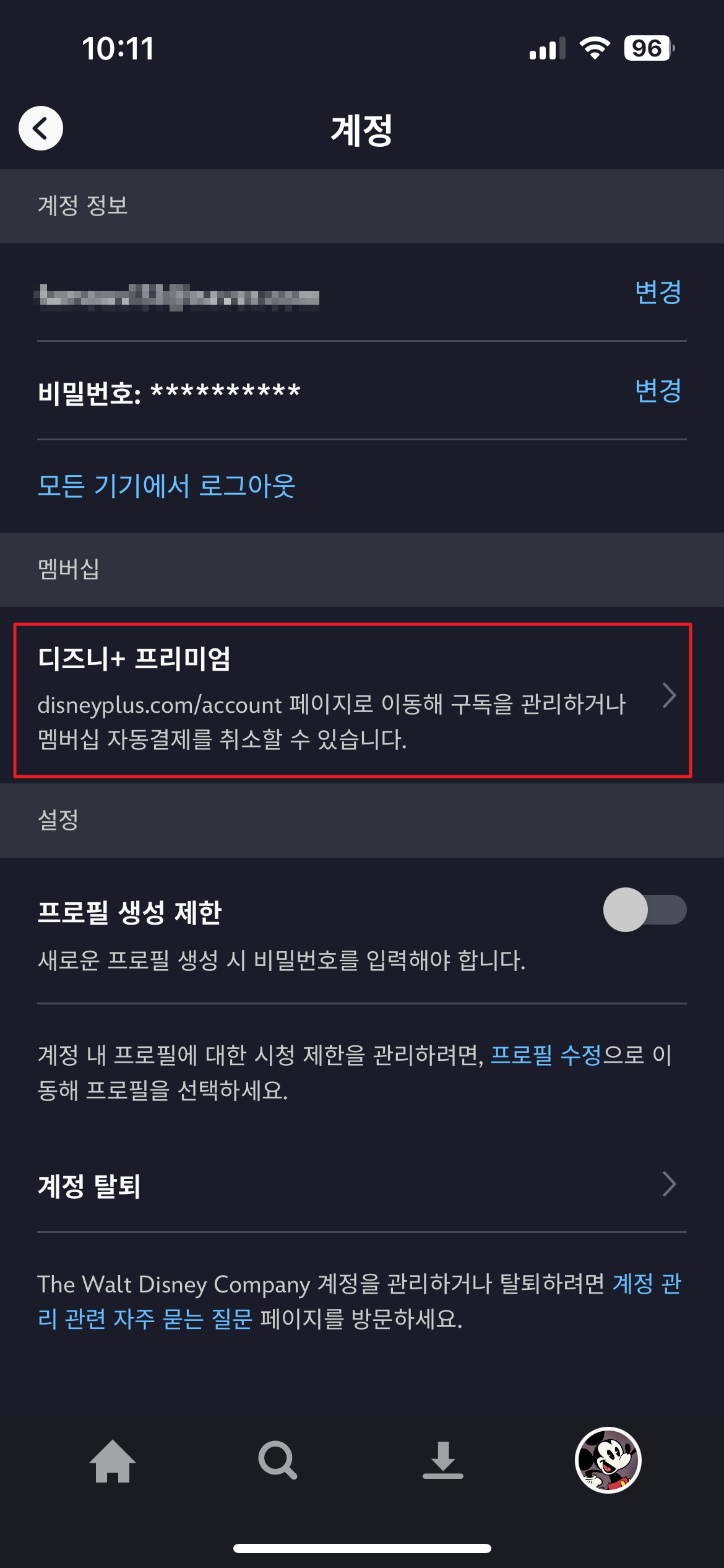 2. 디즈니 어플에서 해지하기 - 실패