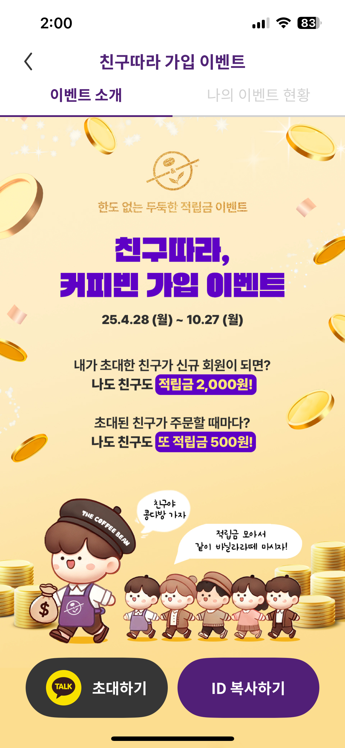 커피빈 친구초대 이벤트가 생겼다!