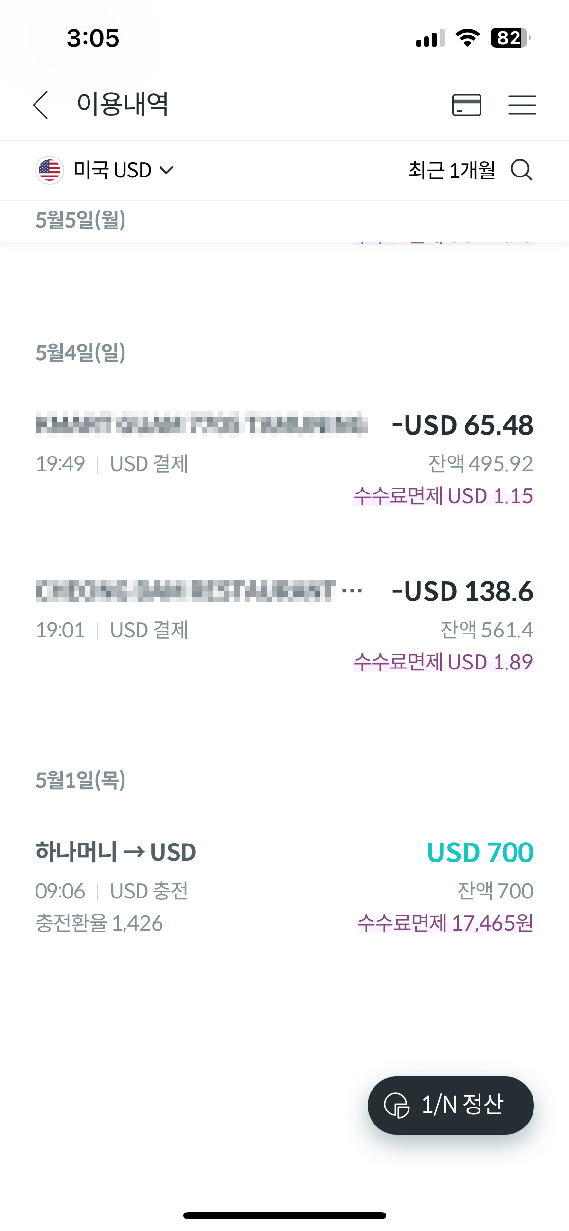 당시 환율로 700달러까지 환전해 놓을수 있었다.