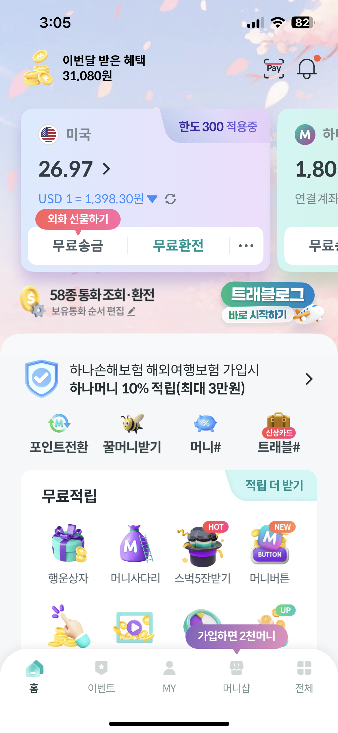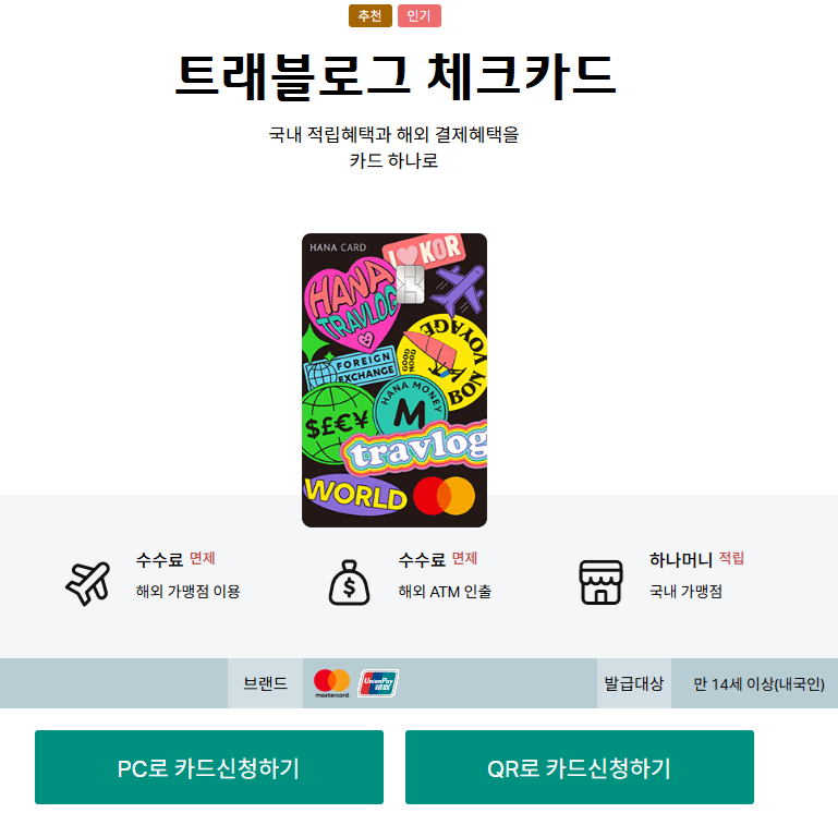 하나은행에서 발급해주는 트래블로그 카드를 사용해보았다.