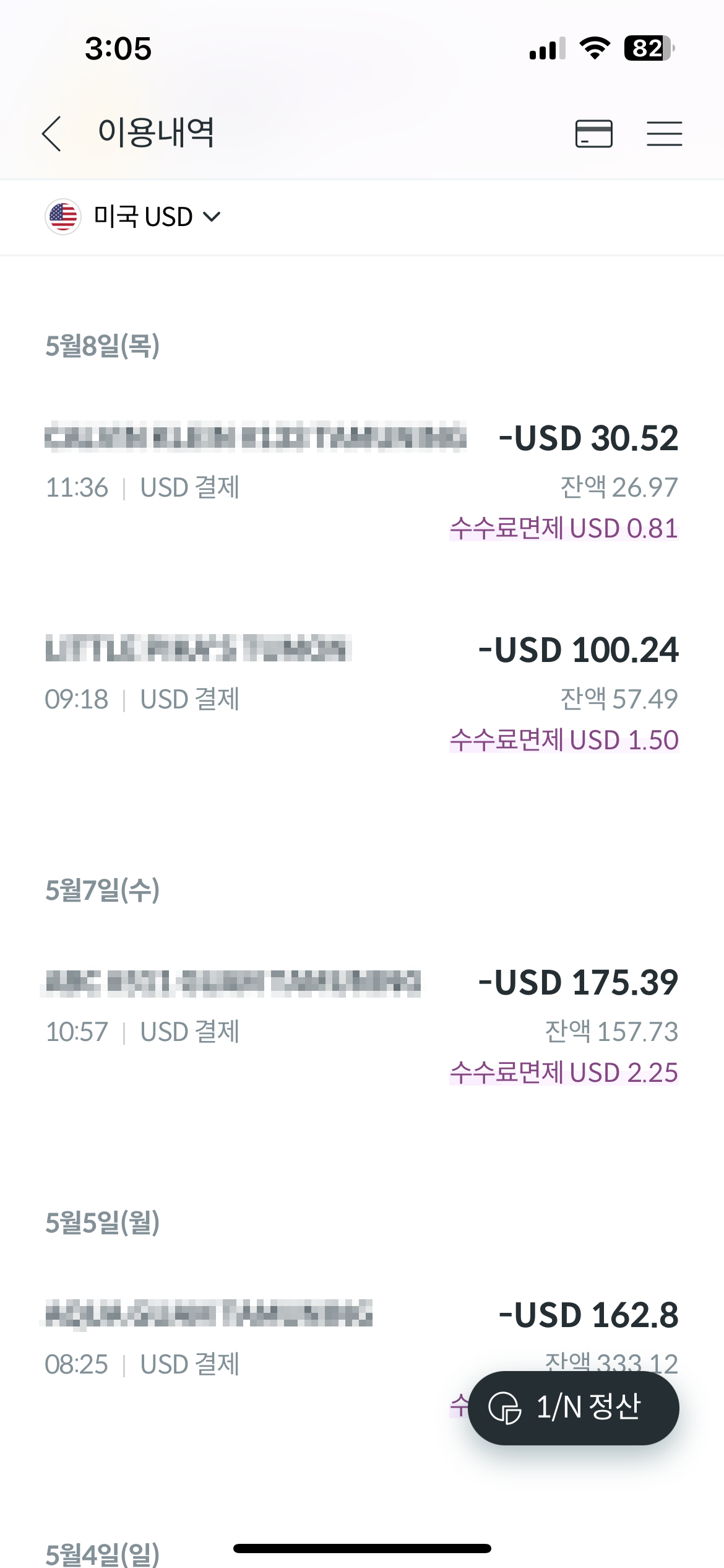 신용카드를 사용했던 유일한 경우는 렌트카 비용 결제시 방식이 처음에 디파짓 (보증금) 을 같이 결재하고, 나중에 다시 돌려받는 형태여서 그 때만 신용카드를 사용했던것 같다.