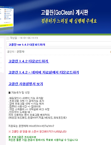 GoClean1 PC 윈도우 최적화 하자. 고클린 다운로드 PC 윈도우 최적화로 유명한 프로그램. 고클린 입니다. 다운받고 사용해보세요. 다운로드 파일은 하단에 첨부했습니다. 고클린 사이트에서 받으셔도 되고요. http://www.gobest.co.kr/goclean/goclean1.htm 고클린 홈페이지에서도 프로그램 무료다운로드가 가능합니다. 고클린 설치 후 실행화면이에요. PC 윈도우 최적화를 위한 기능들이 많이 있죠. 그중 하드디스크 최적화, 액티브X 삭제, 익스플로러 최적화 기능이 괜찮은듯해요. 광고형 Toolbar 혹은 사용하지 않는 Toolbar는 제거해주는게 좋죠. 하드디스크 최적화 기능은 PC에 불필요한 파일을 자동 검색하여 삭제 해주는 기능입니다. 이게 굿~ 개인정보 삭제 등 PC 최적화를 간편하게 할수 있어서 좋네요. 첨부파일 다운받으세요~ 2015. 1. 18. 이전 1 다음